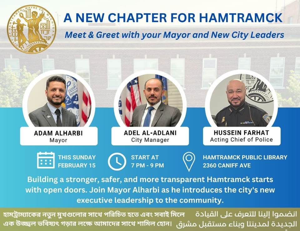 That’s when Hamtramck’s newly-elected Mayor Adam Alharbi is inviting the public to a meet-and-greet this Sunday (Feb. 15) at the Hamtramck Public Library.