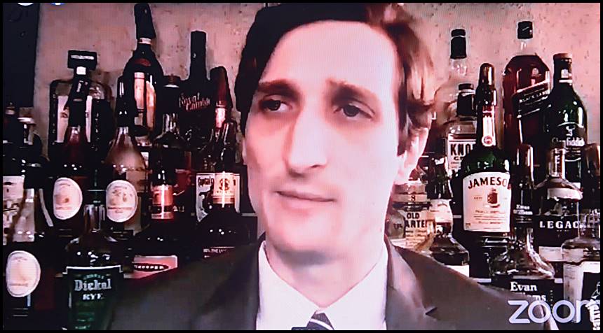 (The council meetings have been held via Zoom, with each councilmember at their own location. Perrotta has been Zooming from what appears to be his bar, Trixie’s, with a backdrop behind him of rows of shelving stocked with liquor bottles.)